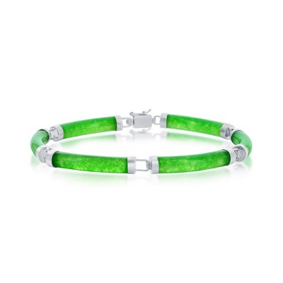 Bella Silver Sterling Silver Jade Curved Bar Link Bracelet - Green - 7.5 Inch