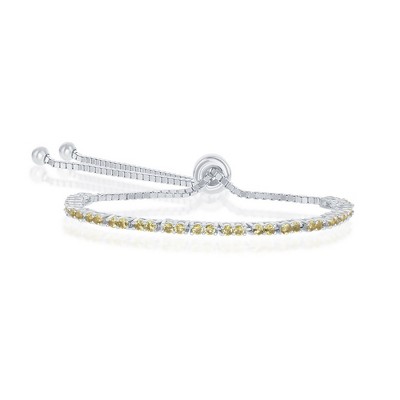 Bella Silver Sterling Silver 2MM Citrine CZ 'November Birthstone' Tennis Adjustable Bolo Bracelet - Yellow