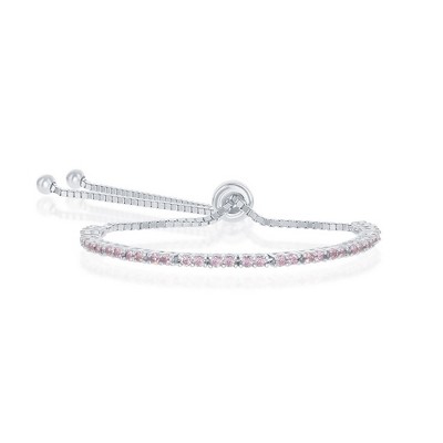 Bella Silver Sterling Silver 2MM Pink CZ 'October Birthstone' Tennis Adjustable Bolo Bracelet - Pink