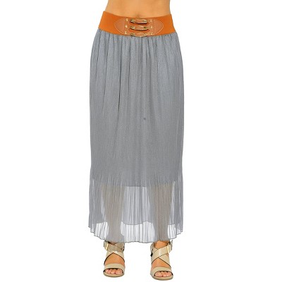 INSPIRE CHIC Women's Fall Winter High Waisted Back Elastic with Belt Work Office Midi Skirts