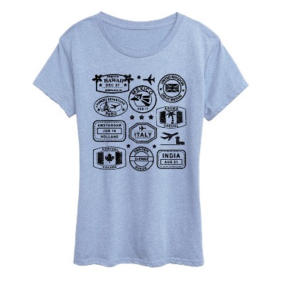 Women's - Instant Message - Passport Stamps Short Sleeve Graphic T-Shirt
