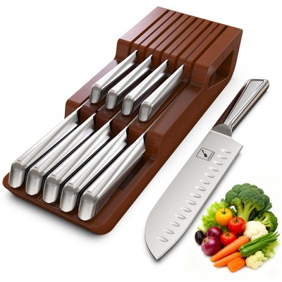 COMMERCIAL CHEF 6-Piece Knife Set with Pakka Wood Handles and Block, Brown