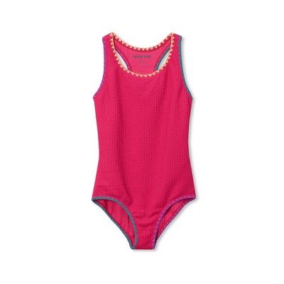 Lands' End Kids Chlorine Resistant Sporty Hi-Neck Racer Back One Piece Swimsuit