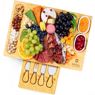 Picnic at Ascot Patented Swiveling Multi Level Extra Bamboo Charcuterie Board with Cheese Knife Set, Stores as a Compact Wedge