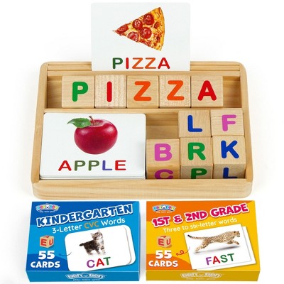 BenBen Spelling Games with Flash Cards, Montessori Toys for 3-6 Kids, Wooden Matching Letters Games