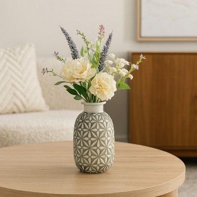Sagebrook Home Decorative Daisy Ceramic Vase Contemporary Flower Vase for Home Office Decorative Accent