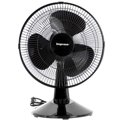 Impress 12 Inch 3 Speed Oscillating Table Fan in Black