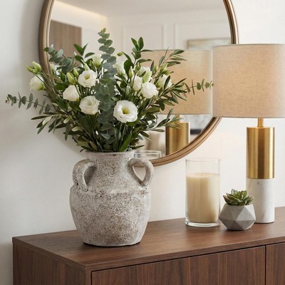 Terracotta Triple Handle Vase for Living Room Decor - Casual Home Decor Accent for Entryway, Bedroom, and Office Shelf