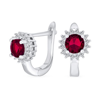 Bling Jewelry Classic Small CZ Cubic Zirconia Circle Halo Round Solitaire Stud Huggie Earrings .925 Sterling Silver Color - Red