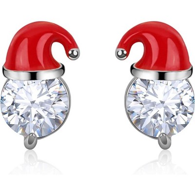 Red Christmas Hat Stud Earrings with Crystal Gems for Holiday Events.