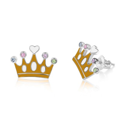 Chanteur Hypoallergenic Kids Jewelry Accessories Crown Heart CZ White Gold Palladium Plating Stud Earrings Surgical Titanium Posts