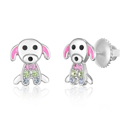 Chanteur Hypoallergenic Kids Jewelry Accessories Dog Multi-color CZ White Gold Palladium Plating Stud Earrings Surgical Titanium Posts