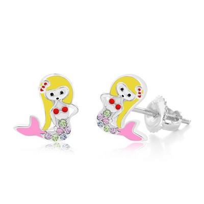 Chanteur Hypoallergenic Kids Jewelry Accessories Butterfly Mulit-color CZ White Gold Palladium Plating Stud Earrings Surgical Titanium Posts