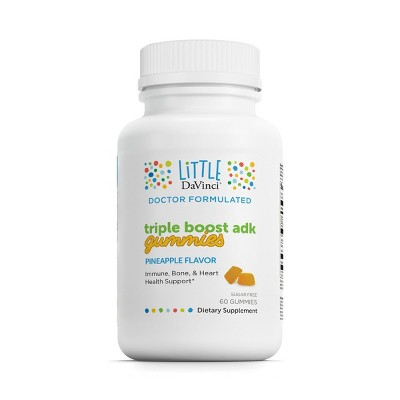 Little DaVinci Triple Boost ADK Gummies - Multivitamin for Kids with Vitamins A, D3 & K2 - Pineapple Flavor - 60 Gummies, Serving Size 1 Gummy