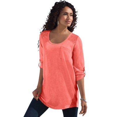 Roaman's Textured Lace Trimmed Tunic