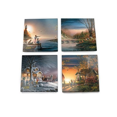 Courtside Market Amber Hearth Collection 4″ Circle Ceramic Coasters – 6 Piece Set