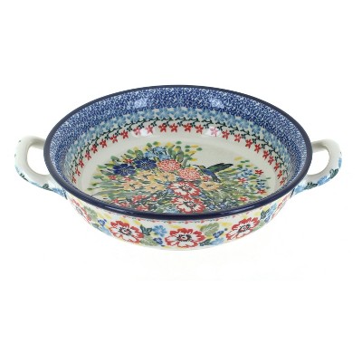 Blue Rose Polish Pottery 419 Ceramika Artystyczna Small Round Casserole with Handles