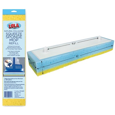 LOLA Squeeze Sponge Mop Refill - w/ Foam & a Natural Cellulose Layer, Absorbs and Wicks Moisture, only Fits LOLA Brand Sponge Mop, 9” Head
