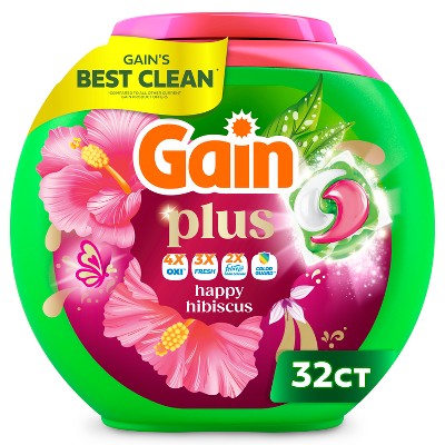 Gain Hibiscus Hula Super Flings Plus Laundry Detergents - 32ct: Concentrated, Deep Cleaning, High Efficiency, Child-Resistant Packaging