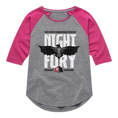 Girls' - How to Train Your Dragon - Night Fury Flight Shirt Tail Raglan Graphic T-shirt