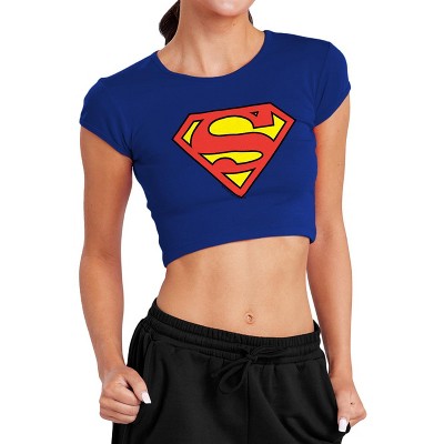 Women's Superman Take Me Home Shield Cap Sleeve Baby Rib Crop Top