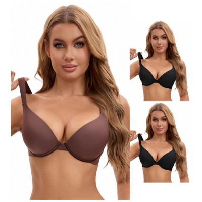 INSPIRE CHIC Women's Lace Front Closure Push Up Underwire T Back Bras 3 Packs
