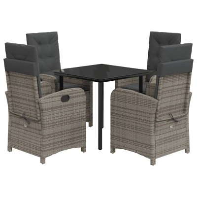 vidaXL 5-Piece Outdoor Dining Set with Adjustable Gray Poly Rattan Chairs and Tempered Glass Table - Cushioned Seating for Garden, Patio