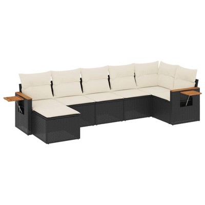 vidaXL Garden Sofa Set Black PE rattan Large Adjustable Feet