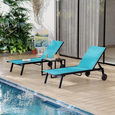 Outdoor Lounge Chairs With Wheels - Adjustable Backrest, Poolside Loungers, Patio Chaise Lounge Chairs, Side Table Set of 3