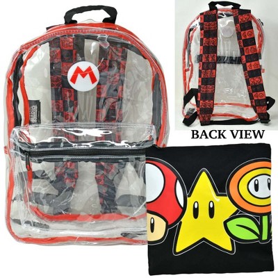 Super Mario Transparent Backpack Clear 16" School Bag