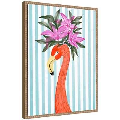 Kate and Laurel Flamingo Framed Canvas by Nikita Jariwala, 18x24, Beaded Rustic Natural