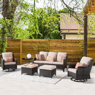 Ovios Tampa 6pc Wicker Outdoor Patio Furniture Conversation Sofa Set with Swivel Chairs and Cushions
