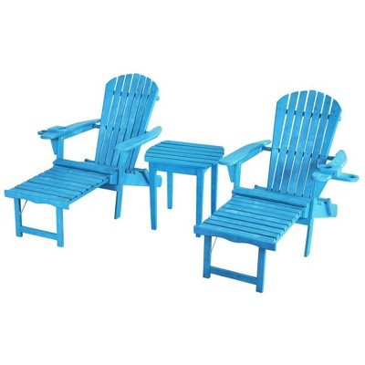 Jiallo Oceanic Collection Adirondack Chaise Lounge Chair Foldable, cup and glass holder, built in ottoman, Set of 2 Lounge chairs and 1 end table