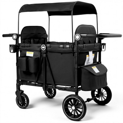 Itopfox Stroller Wagon for 2 Kids with Canopy & Organizer, Foldable Design for Easy Storage, Adjustable Handle, Black