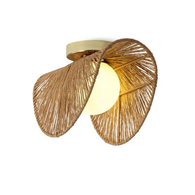 VidaLite Sovev Wall Sconce: Bohemian Rattan Shade, Brass Plated Finish, Glass & Aluminum Body, Hardwired, 60W Max