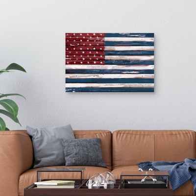24" x 36" Shiplap Allegiance II by Studio Arts Unframed Wall Canvas - Masterpiece Art Gallery: Rustic US Decor, Ready to Hang