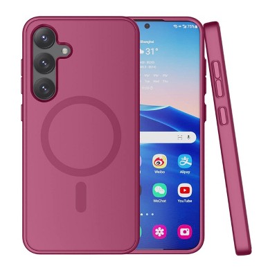 Reiko Rose Lux Red Embedded Wireless Charging Magnetic Skin PC TPU Combo Mobile Phone Case for Samsung Galaxy S24