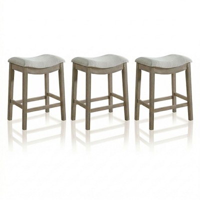 ROME + OAK Parker 26 Inch Counter Stool, Backless Saddle Kitchen Barstool in Reclaimed Oak Finish with Grey Fabric Upholstery Cushion Seat, Set of 3