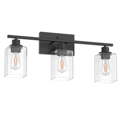 DORESshop Vintage Industrial 3-Light Vanity Light, Matte Black Finish, E26 Base, Non-Integrated, Clear Square Glass Shades, Bulbs Not Included