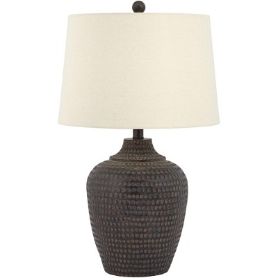 Regency Hill Bledlow Urn Traditional Farmhouse Rustic Table and Floor Lamp Set Brown Dark Charcoal Faux Wood Finish Living Room Bedroom Bedside