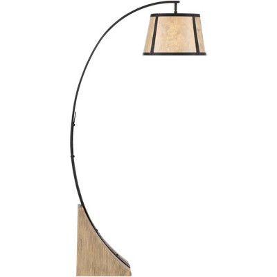 Franklin Iron Works Oak River Rustic Mission Arc Floor Lamp 66 1/2" Tall Dark Gray Wood Blond Mica Drum Shade for Living Room Reading Bedroom Office