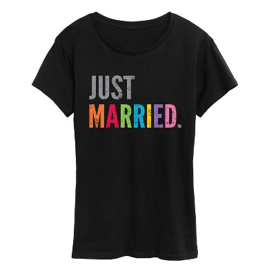 Women's - Instant Message - Just Married, Rainbow Short Sleeve Graphic T-Shirt