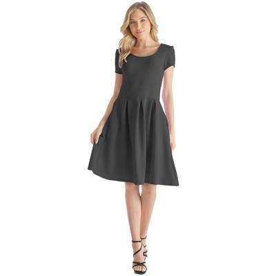 Womens Scoop Neck Short Sleeve Knee Length Pleated A-Line Pocket Dress - 24seven Comfort Apparel™
