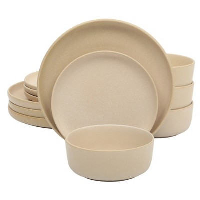 Itopfox 12-Piece Stoneware Dinnerware Set, Plates and Bowls for Home or Restaurant, Chip and Scratch Resistant, Microwave and Dishwasher Safe, Saturn
