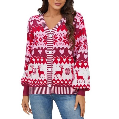 Coolmee Ugly Christmas Cardigan Sweaters for Women V Neck Button Down Sweaters Open Front Knit Cardigan Funny Sweater