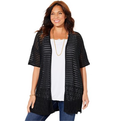 Woman Within Long-Sleeve Pointelle Cardigan Sweater