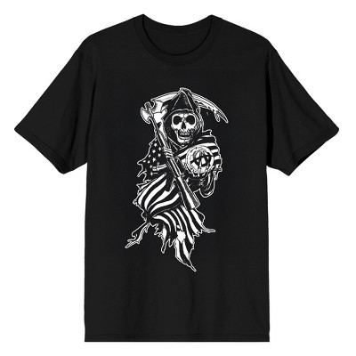 Sons Of Anarchy American Flag Reaper Adult Black Crew Neck Short Sleeve T-shirt
