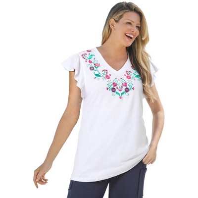 Woman Within Embroidered V-Neck Tunic