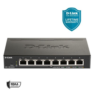 D-Link 10-Port Gigabit Smart Managed PoE+ Switch, 8x PoE+ Ports (130W) + 2x Optical SFP Ports (DGS-1210-10MP)