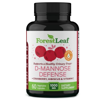 Forest Leaf D-Mannose Defense Dietary Supplement, Made with Cranberry, Hibiscus & Vitamin C, Supports a Healthy Urinary Tract, 1000mg - 60 Caps